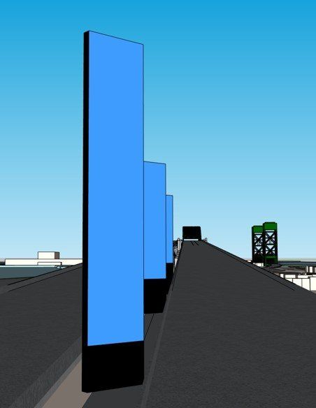 Under the road deck, the bridge pillars provide an opportunity for vertical gardens or as a canvas for public art.