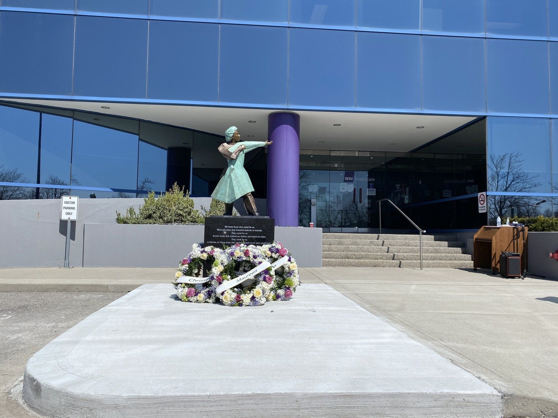 A solid figure determined and undaunted by the tasks that lie ahead. The sculpture will memorialize all of the union members as well as those who have lost their lives in the care of patients.
